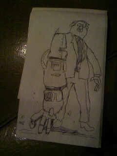 メカの腕でぎこちないながらもお茶をすする知らないおじさんは